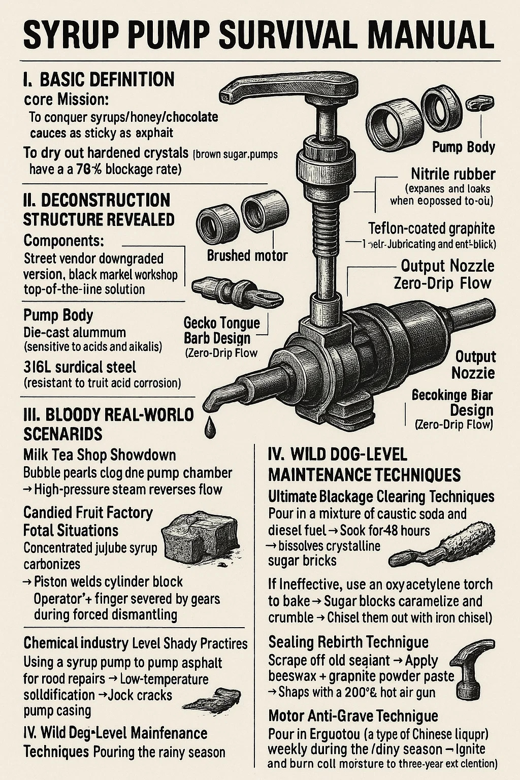 | Pump Body | Pot metal cast (acid-eaten) | 316L surgical steel (defies fruit acid) | Zinc dissolves → syrup metal poisoning |